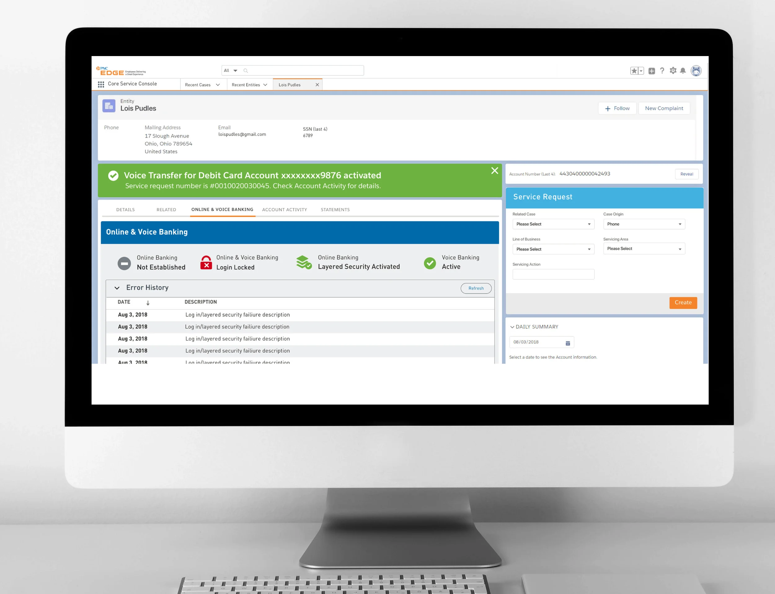 Design for Customer Relationship Management Software interface for call center operators. While the UI leverages the existing Salesforce Lighting Design System the navigation, interaction patterns, screen flows and information architecture is customized to users and business requirements.